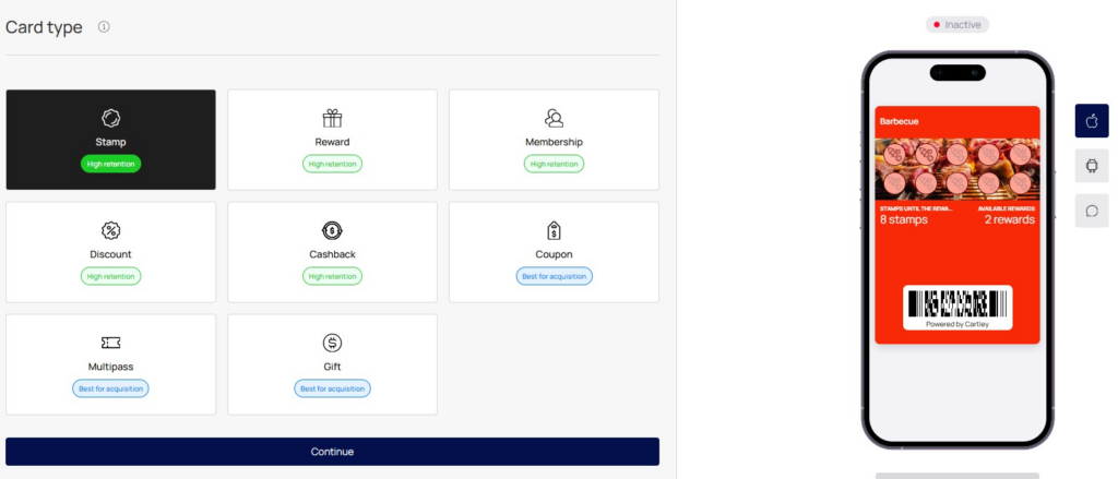 سواء كانت بطاقة نقاط، طوابع، زيارات، أو مكافآت فورية، تتيح Cartley Wallet اختيار النموذج المناسب لطبيعة نشاطك وسلوك عملائك.