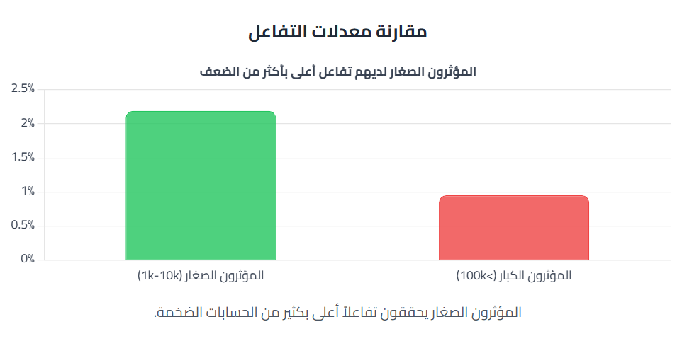كما تشير دراسة HypeAuditor إلى أن 76% من مؤثري إنستغرام هم من فئة النانو (من 1,000 إلى 10,000 متابع)، وأن لديهم أعلى معدل تفاعل يصل إلى 2.19% بين جميع فئات المؤثرين، مما يجعلهم خيارًا جذابًا للعلامات التجارية. HypeAuditor.com